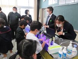 3年生以上の子どもたちが、手をきちんと丁寧に洗うことの大切さを学習しました。講師として中北薬品株式会社金沢支店の方々にご協力いただき、手洗い教室を開催しました。今まで、綺麗に洗ったつもりでいても、実はバイ菌が・・・。ということを、目で見える形で体験し、コロナに負けない!風邪に負けない!ための正しい手の洗い方を学ぶことができました。日頃の手洗いが変わることを期待しています。