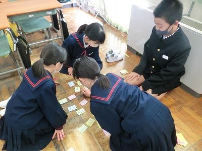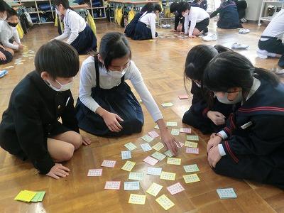 久しぶりに青空が広がる気持ちいい天気になりました。大海っ子は、3学期も頑張っています。2限目に4年生が百人一首をしていました。今月下旬に学年ごとに百人一首大会が行われますが、それに向けての練習です。札を覚えている子は、上の句で小気味よく札を取っていました。百人一首は、札を覚えることも大切ですが、札の場所を覚えることもたくさん取るために大切です。がんばってください!!
