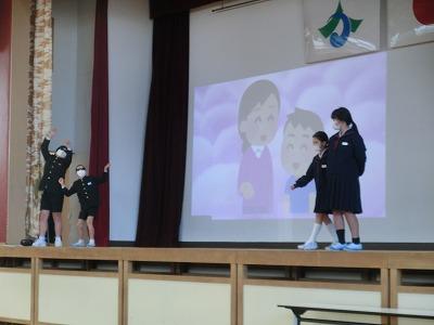3限目には、1年生が2月に行われる「新一年生を迎える会」のための音読劇の練習をしていました。「たぬきの糸車」の音読劇です。とてもかわいらしくて見ていて心がほっこりしました。本番がとても楽しみです。