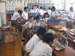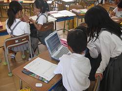 社会科で消防署を見学して気づいたことを、タブレットPCを使ってまとめています。