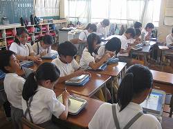 今日の5げんめの国語の時間は、タブレットPCを使って漢字練習をしました。
