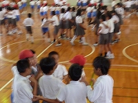 きょうの昼休み、体育委員会の子どもたちによる「増え鬼」遊びがありました。まず、体育委員会の6年生2名が鬼になり、捕まった人は赤帽子を白に変え、鬼になります。なんと3分あまりで参加者全員が白帽子になりました。暑くても元気いっぱいのねぶっ子です。