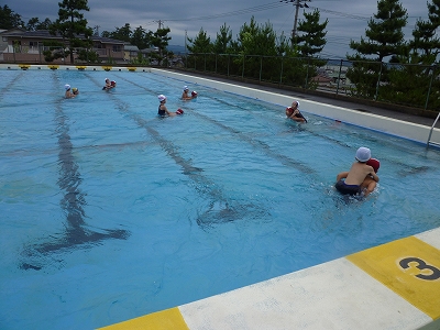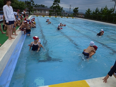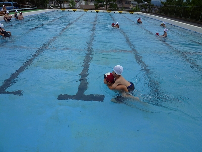 1年3組と6年3組の子どもたちがいっしょにプールに入りました。6年生が1年生をおんぶしてリレーをしていました。1年生はもちろん6年生も笑顔でした。6年生の子どもたちの感想を聞くと、どの子もとても楽しかったと言っていたそうです。