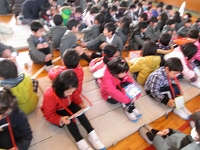 今日の昼休み、体育委員会主催の短縄大会がありました。1年生から6年生まで、体育館いっぱいの子どもたちが集まりました。1年生にも2重とびがとっても上手な子がいるのに驚きました。