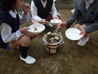 4年生は社会科で昔の人の暮らしについて勉強しています。七輪を使ってお餅を焼いたり、冷たい水で洗濯したりすることで、今がいかに便利な時代であるかということを体感したことでしょう。