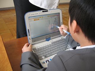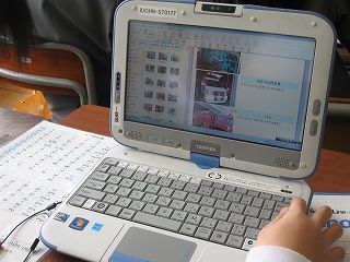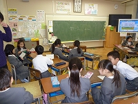 社会科で消防署を見学して気づいたことを、タブレットPCを使ってまとめています。