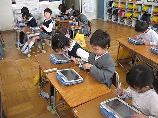 今日の5げんめの国語の時間は、タブレットPCを使って漢字練習をしました。