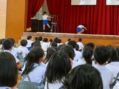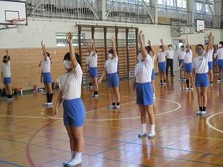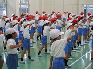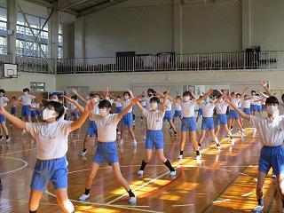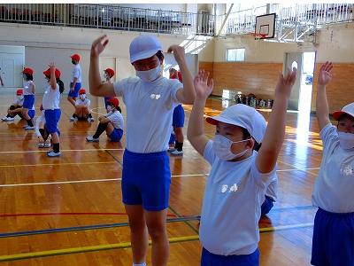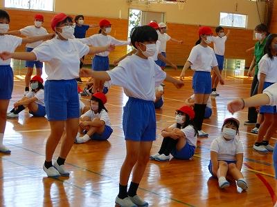 運動会が近づき、それぞれの学年での演技の練習が少しずつ始まっています。体育の時間の初めに踊ると、よい準備運動にもなっているようです。体育館もようやく涼しくなって、練習しやすくなってきました。写真は、3年生の「よさこいソーラン」と5年生の「若い力」です。コロナ禍で、運動会も例年のようにはいきませんが、一生懸命がんばる子供たちの姿には、いつも元気をもらいます。