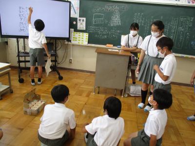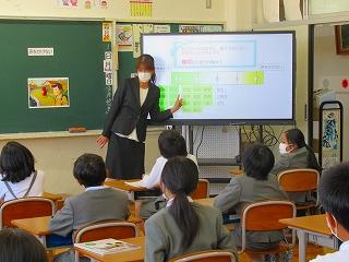 先週より、算数少人数の先生として、新しく惣向修二(そむかいしゅうじ)先生に来ていただいています。今日は、4年1組の授業を参観させていただきました。惣向先生は、中学校で数学を教えていらっしゃたこともあり、算数に関してはベテラン中のベテランの先生です。4年生と5年生の算数の学力向上のため、子供たちと息を合わせながら授業してくださっています。子供たちは惣向先生との出会いの場で先生を拍手でお迎えし、惣向先生も子供たちのことを「可愛らしい子供たちですね」とおっしゃって下さいました。本当にうれしいことです。惣向先生、どうぞこれからもよろしくお願いいたします。