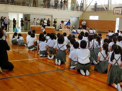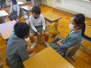 テーマは「ともだち」で、役割演技で登場人物になりきって気持ちを考える場面があり、演じている子はもちろん、それを見ている子供たちもお話の中心となる場面の心情を深く考えていました。低学年なりに「ともだち」とはどうあるべきかを楽しく学べていました。