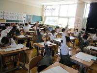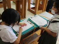 教室では、宿題を友達と見せ合い提出したり、平和に関する本を担任の先生に読み聞かせしてもらったり、それぞれよい時間を過ごしていました。