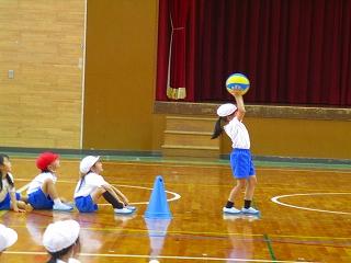 学校では、9月の生活目標「元気な明るいあいさつをしよう」の取組として10月に控えた運動会にちなんで「あいさつ玉入れ」を行っています。
