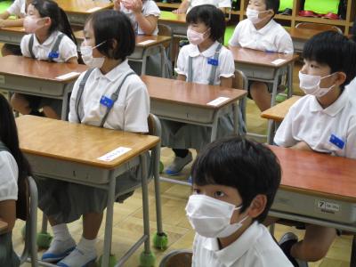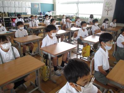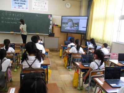 8月6日 オンライン登校を行いました。緊急時に備えた訓練とも捉え、子供たちは各家庭から、学童の児童は空き教室に入り、それぞれクロムブックを使って担任の先生とmeetでつながりました。夏休みがスタートしてから2週間。子供たちの元気な笑顔が見られてほっとしました。meetでは、健康観察をしたり宿題等に関する質問や相談をしたりしました。中には、家族と出かけた楽しい話をしてくれる子もいました。次は、8月22日の全校登校日で会いましょうね!
