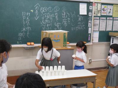 かわいい1年生も日々成長し、授業での話し方や聞き方がすっかり身に付いてきました。今日は1年1組の道徳の授業を参観しました。授業者は、河内先生です。今日のテーマは「あとかたづけ」で、子供たちはなぜあとかたづけをした方がいいのかについて、とてもよく考えていました。「あいさつ」「へんじ」「あとかたづけ」ができることは、生活の基本です。よりよい生活について、頭で理解するだけでなく自分から進んで行動できる子になってほしいと願っています。