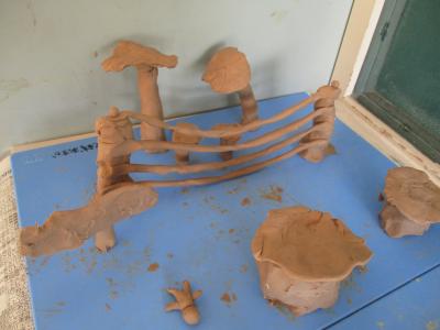 子供たちは、画像を見ながら、想像の世界で五感を働かせて詩を作りました。「何を見ている?」「さわってみて。どんな感じ?」「耳をすまして。どんな音?」「においをかいで。どんなにおい?」「食べてみて。どんな味?」という5つの質問に導かれながらリレー方式で短く言葉を綴り、グループで詩を作っていきます。最後にそれぞれのグループの詩を披露し合い、気になるフレーズについて話し合いを深めていきました。子供たちの言葉選びはとてもユニークで、大人にない発想で鑑賞が進みました。最後に工芸館の方から作品についての説明を受け、一枚の皿について楽しく鑑賞できたよい時間となりました。国立工芸館の皆様、ありがとうございました。