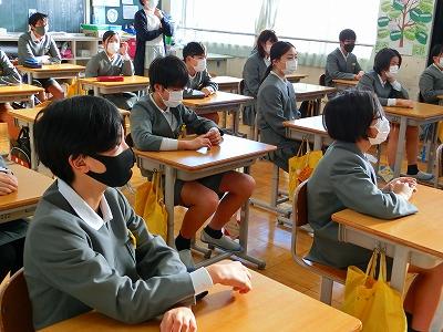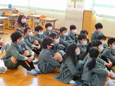 そこで、本出先生から中学校での一日の流れや中学校までにできるようになってほしいこと、今の6年生の生活を大切にしてほしいこと等を話していただきました。コロナ禍で、学校では異学年交流も減り6年生の活躍の場が少なくなっています。学校生活に張り合いがなくなることは否めませんが、「やるべきことをきちんとやる」ことが今最も大切になっています。一人一人に改めて、そのことを意識してもらうよい機会となりました。本出先生、ありがとうございました。今後、様々な工夫の中で運動会やふれあい活動を行っていきます。6年生の活躍の場ができるよう学校も少しずつではありますが変化していきます。