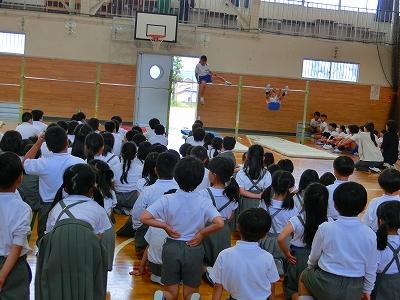 本校の校長室からは、グラウンドがよく見えます。昼休み、パソコンの手を止め、ふとグラウンドに目をやると、鉄棒にぶらさがっているちびっ子がたくさん・・・・・・ その近くには、それまで器械運動交歓会に向けて頑張ってきた4年生もいます。