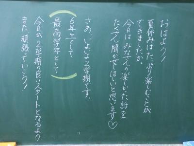 1年の中で一番長い2学期。大きな行事もあり、学習内容の質も量も多くなる大変な学期でもありますが、それはたくさんの「チャンス」があることを子供たちに伝えました。