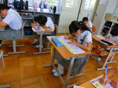 2学期のねぶっこ漢字検定を行いました。どの子も自分が書ける最高に美しい字で、100点めざしてよく頑張りました。2学期からは1年生も参加しました。今回は、100点の金賞の人は全校児童の半分をこえており、ほとんどの人が80点以上の合格となりました。漢字が苦手な子も自分なりに目標を決めて、少しずつ覚えられればいいです。みんなの頑張りがその字から伝わってきました。