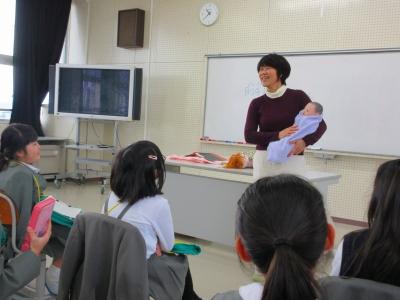 助産師さんをお招きし、自分たちがどのようにお腹の中で育ち、どのように生まれてきたのかをお話していただきました。