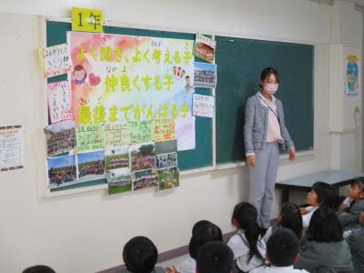 5月10日(火)、1年生にとって初めての、がらがらどんさんによる読み聞かせがありました。がらがらどんさんの優しい声に、子ども達は静かに耳を傾けていました。