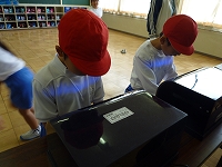 今月の保健目標は「みんなで風邪予防 手を洗おう」です。今日から、各学年の体重測定が始まりました。今日は、1年生の測定です。同時に手洗い実験もしました。きれいに手を洗うのはなかなか難しいようでした。写真のような機械に手を入れると、汚れの残っているところは白くうつります。合格すると手洗い名人になります。
