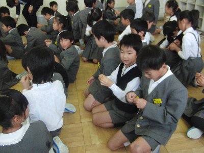 4年生の女の子が袱紗を持っていたので、「お茶クラブ?」と尋ねると、「茶道クラブです。」という返事です。4年生以上は、クラブ活動を楽しみに登校した子もいるのでしょう。