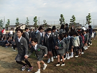11月12日、地震と津波を想定した避難訓練をしました。まず、教室から運動場に1次避難をしました。避難開始から安否確認まで4分44秒でした。ここでは学年毎に並びます。