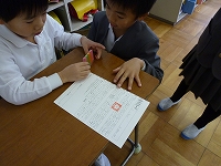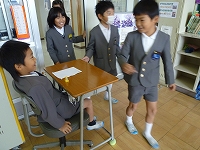 11月22日にふれあいグループ活動で行われるウォークラリーのための打合会がありました。それぞれのグループの催し物について、役割分担やゲームの仕方などについて相談の時間です。本番さながら、グループを半分に分け、お店番役とお客さん役になり練習をしていました。6年生が中心となり、楽しそうに活動をしていました。6年生が頼もしく見えました。先輩たちから受け継いだリーダーとしての役割を次の学年にしっかりと引き継いでほしいものです。