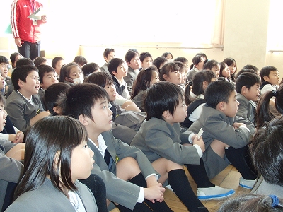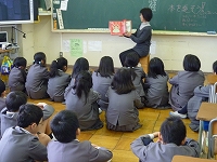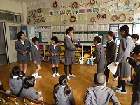 12月11日には、助産師さんをお迎えし、人の生命の誕生についてのお話を聞かせていただきました。その助産師さんは「私たち助産師は、生もうとするお母さんと生まれようとする赤ちゃんを手助けする仕事をしています。」と話されました。この日も新しい命の誕生に立ち合われたそうです。お話を聞く子どもたちの表情は真剣そのものでした。