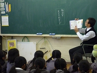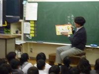 12月4日の朝読書は先生方による読み聞かせです。この日は、くじ引きで読み聞かせをする学級を決め、自分の担当学級以外の教室で先生たちが本を読みます。どの先生にどんな本を読んでもらったかお子さんに聞いてみてください。中には、妹さんの手作り絵本を読んだ先生もいます。