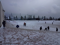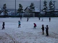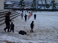 今朝は運動場にうっすら雪が積もりました。長休みには、さっそく運動場に出て雪遊びをする子どもたちがたくさんいました。雪合戦をする子、雪玉を作る子、雪の上に足跡がつくのがうれしいのかただ走り回る子!お昼休みにはもうすっかり雪がとけたのですが、それでも運動場の隅っこに残る雪で遊んでいる子もいます。かばんの中に靴下の替えを1枚入れておくといいですね。