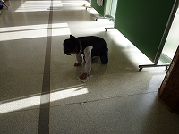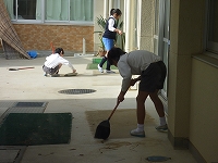 いつもは子どもたちといっしょに掃除をしているのですが、今日はカメラと箒をもって子どもたちの掃除の様子を見てきました。