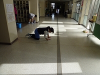 いつも感心するのは、職員室玄関から体育館までの長い廊下をぞうきんがけする3年生の姿です。先日、ある研修会でお聞きした大学の先生のお話を思い出しました。「小学生の間はいろんな動きを経験することで、関節の可動域が広がる。いろんな動きをすることが大切」とのことでした。このぞうきんがけは間違いなく体のいろんな部位を使ったすばらしい運動です。