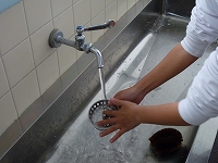 <冷たい水でもがんばってます> <チョークもきれいに>