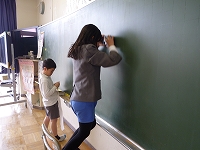 <2年生の黒板ふき名人> <ドアの後ろもきれいに!>
