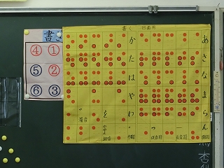 点字は左から右に読むということを教えていただき、点字を書くための道具も見せてもらいました。教科書の「目と心で読む」という文章を点字にしたものを見ると、子どもたちはびっくりした様子で見つめていました。さらに、米島さんがその文章をすらすら読むと、子どもたちはさらにびっくりしていました。