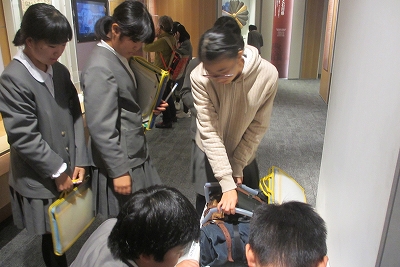 その他にも、目の見えない方が生活で使う道具を見せていただき、子どもたちは興味津々で見ていました。