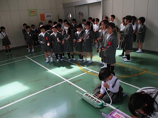 その音読劇をぜひ1年生に披露したいということで、1年生をお招きして、音読発表会をしました。