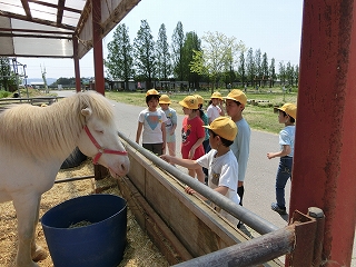 その後には、園内を回って、いろいろな動物を見ました。普段見られない動物をたくさん見て驚きの声をあげたり、ウサギなどとふれあったりしていました。