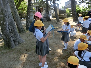 今日は、総合の学習で、アルビスと道の駅サンセットパーク内灘でインタビュー活動を行いました。5年生は、「内灘のよさや見どころを自分たちで発信する」ことを目標に学習しています。