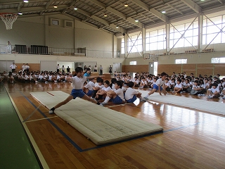 4~6年の応援団員さんが応援の仕方・内容を夏休み中から考えてくれていました。いて、今日の練習でも応援団を筆頭に、全員が声を出して頑張っていました。