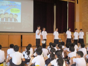 大根布小学校では、毎年2学期に、企画委員会の子どもたちがこの活動を行っています。