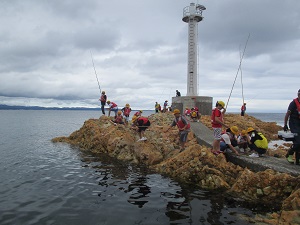 えさに群がるイワシの大群を見て、「すごい!」と驚いている様子でした。