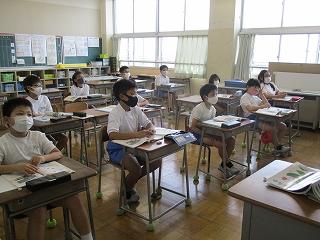 そこで、本出先生から中学校での一日の流れや中学校までにできるようになってほしいこと、今の6年生の生活を大切にしてほしいこと等を話していただきました。コロナ禍で、学校では異学年交流も減り6年生の活躍の場が少なくなっています。学校生活に張り合いがなくなることは否めませんが、「やるべきことをきちんとやる」ことが今最も大切になっています。一人一人に改めて、そのことを意識してもらうよい機会となりました。本出先生、ありがとうございました。今後、様々な工夫の中で運動会やふれあい活動を行っていきます。6年生の活躍の場ができるよう学校も少しずつではありますが変化していきます。