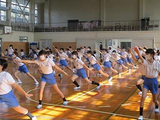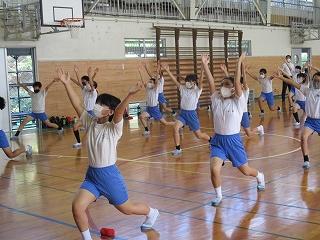 運動会が近づき、それぞれの学年での演技の練習が少しずつ始まっています。体育の時間の初めに踊ると、よい準備運動にもなっているようです。体育館もようやく涼しくなって、練習しやすくなってきました。写真は、3年生の「よさこいソーラン」と5年生の「若い力」です。コロナ禍で、運動会も例年のようにはいきませんが、一生懸命がんばる子供たちの姿には、いつも元気をもらいます。