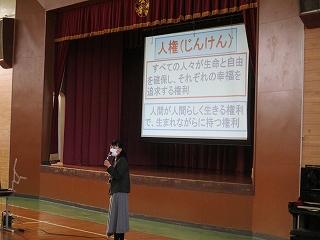 12月の全校集会は、久しぶりに全校で体育館に集まって行いました。ちょっと寒かったけれどしっかり換気し、列の間をあけ、15分間という短時間で行いました。今年度第1回目の集会で、1年生にとっては入学して初めての集会でしたが、静かによい姿勢で最後までしっかりと話を聞く子供たちの姿がうれしかったです。