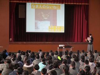4日(金)に、内灘中学校から本出(もとで)先生に来ていただきました。6年生はあと半年ほどで中学校に進学します。今年度はコロナウイルス感染予防のため、これまで夏休みに行われていた中学校部活動体験も中止となりました。そのため、中学校での生徒の様子を感じる機会も今のところ、もてていません。
