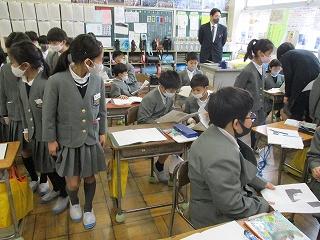 学習では、前の発言者につなげて話すための「大根布ワード」を全校で使っています。「わけは・・・」「似ていて・・・」「自分の言葉でで・・・」「言い方を変えて・・・」「つまり・・・」など、自分がどんな立場で話すのかを発言の前に付けることで、聞き手にも内容が伝わりやすくなります。今年1年で、どの学年も「大根布ワード」を使ってとても上手に話せるようになりました。今後、それぞれが、一つ上の学年の授業を参観します。授業見る方も見られる方もちょっぴり緊張すると思いますが、互いによい学び合いになるといいです。