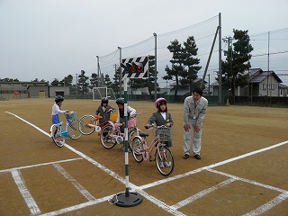 子どもたちは教えていただいたことを思い出しながら、実際に自転車に乗って
